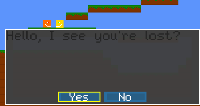 For now, in version 1.2 of the engine, I am implementing a conversation between the player and the NPC,